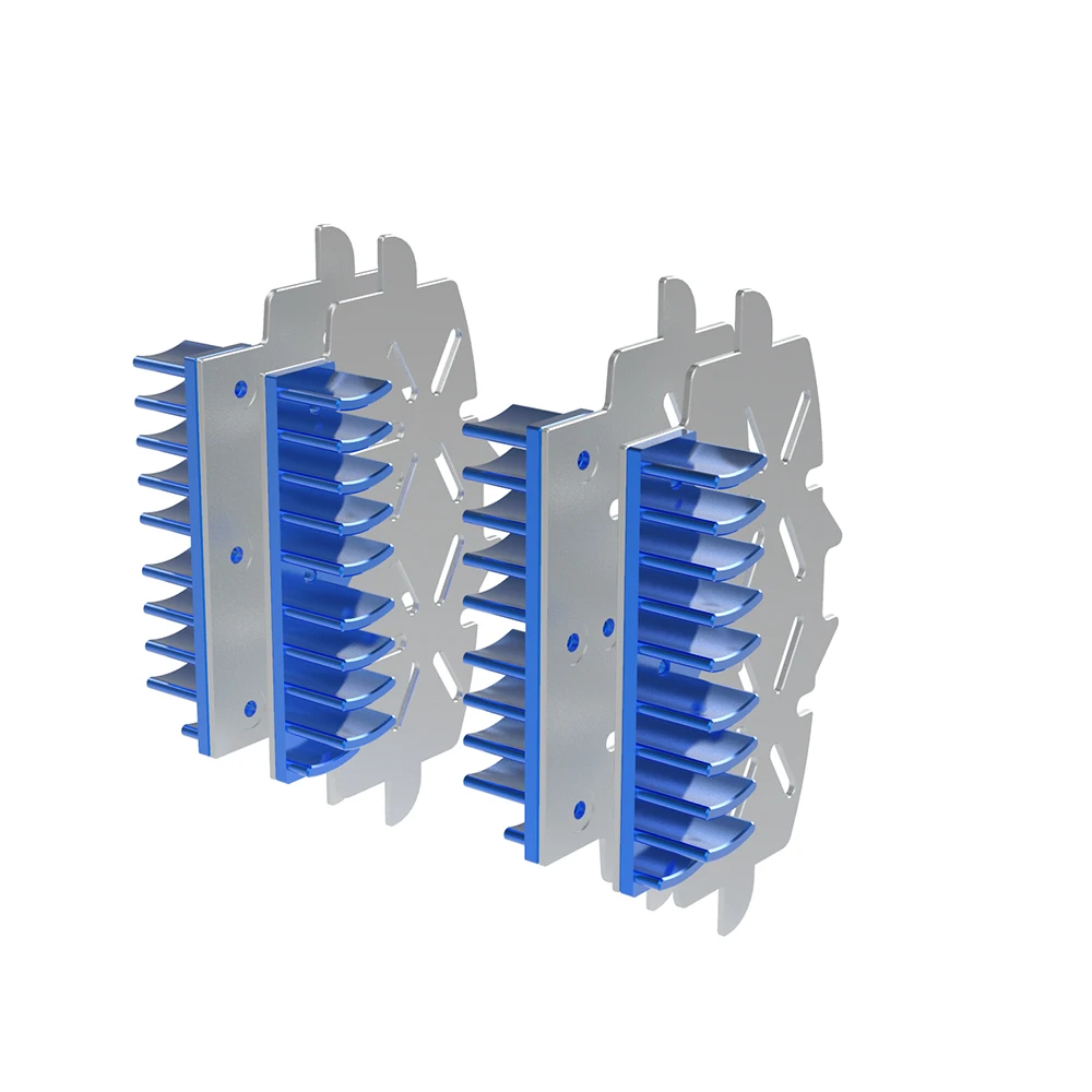 The main body of our heat sink is made of a special thermal steel with a high degree of heat conductivity. The material is first laser cut and then CNC machined in our workshops, the slots have two purposes, the first to reduce the contact surface, the second to release the hot air formed inside the brake piston cavity by reducing the hot chamber effect, and the propagation of heat in the piston and oil. The main body of the steel sink is connected to a light alloy heatsink made of a special aluminum with high thermal conductivity, which has the task of assisting the process of heat dissipation.